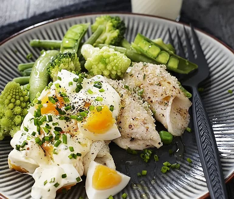 Spätta med ägg- och gräslökssås