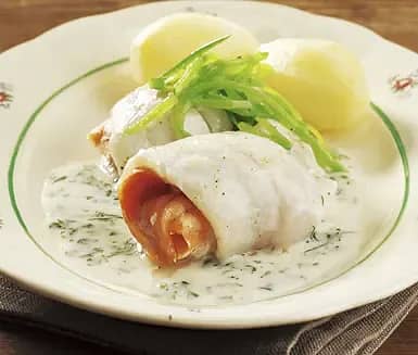 Spätta- och laxroulader med sötsur dillsås