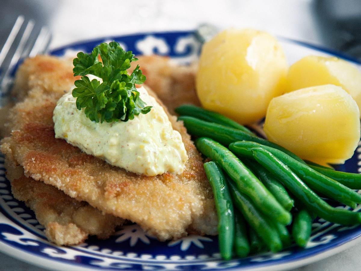 Crunchig spättafilé med varm dillsås