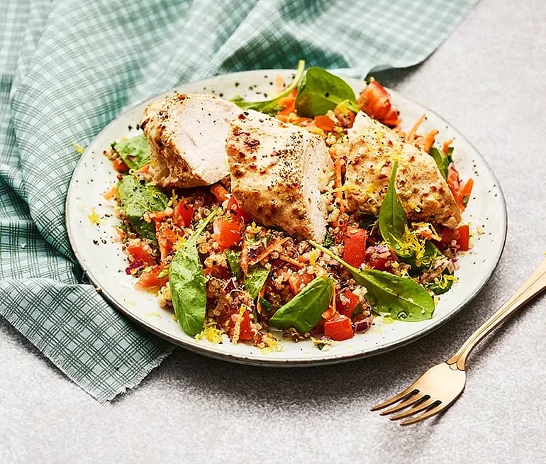 Harissakyckling med spenat- och quinoasallad