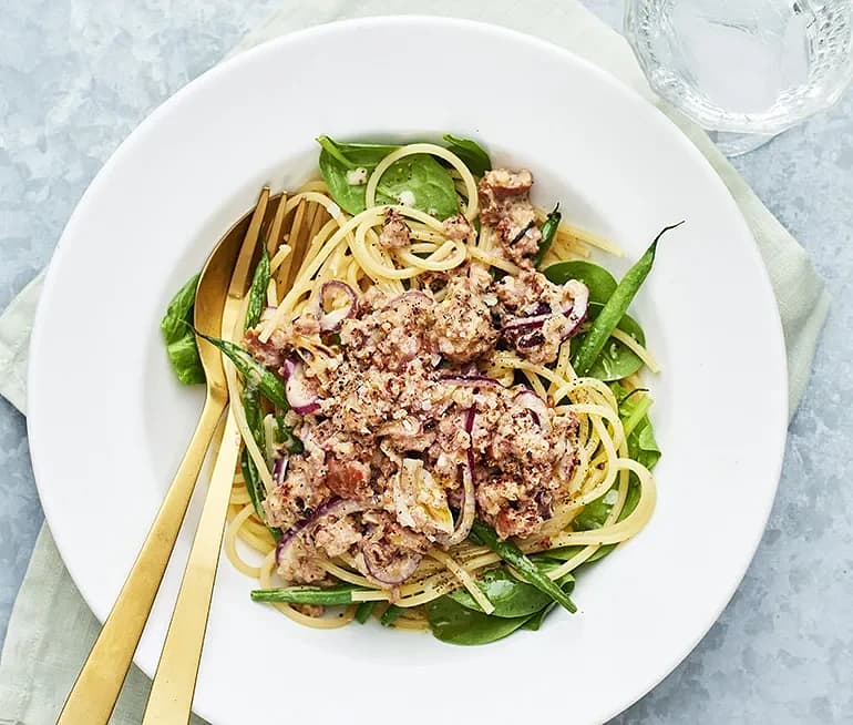 Baconpasta med spenat