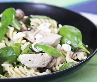 Pasta med kyckling, spenat och feta