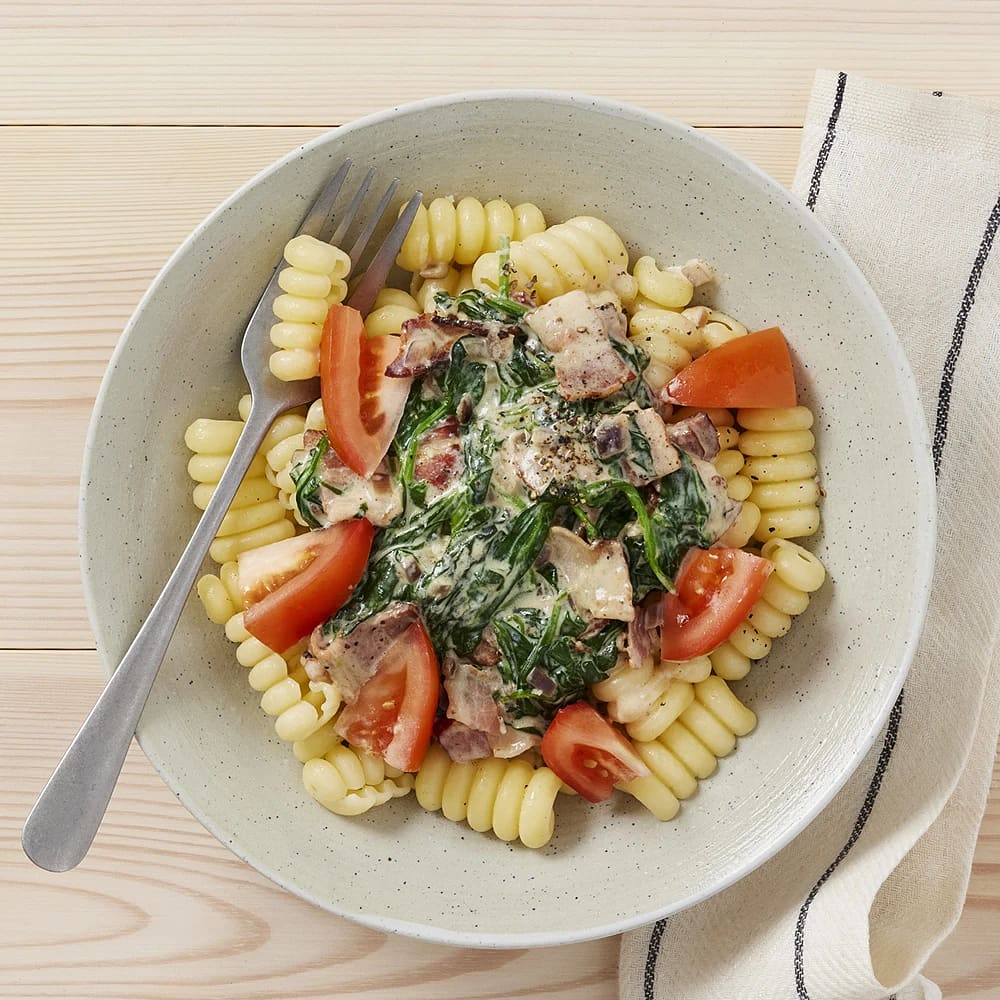 Pasta med spenat och bacon
