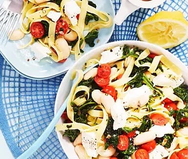 Isterbandspasta med spenat och citron