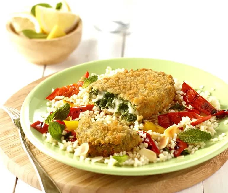 Spenat- och ostbiff med citronmarinerad couscous