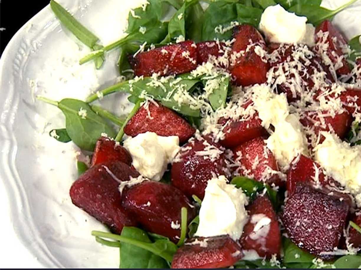 Varma rödbetor med pepparotscrème, spenat och rostade pumpafrön