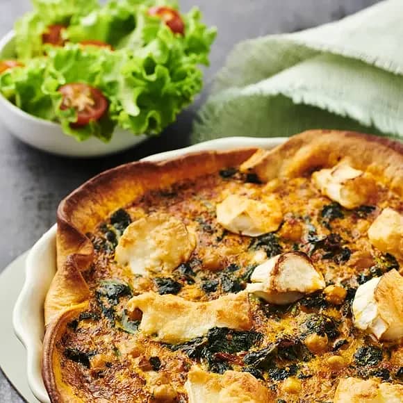 Getost- och spenatpaj med kikärtor