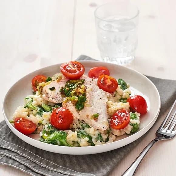 Kyckling med krämig spenatrisotto