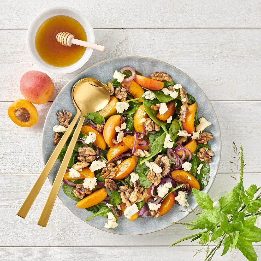 Spenatsallad med rödbetor, karamelliserade fikon och hasselnötter