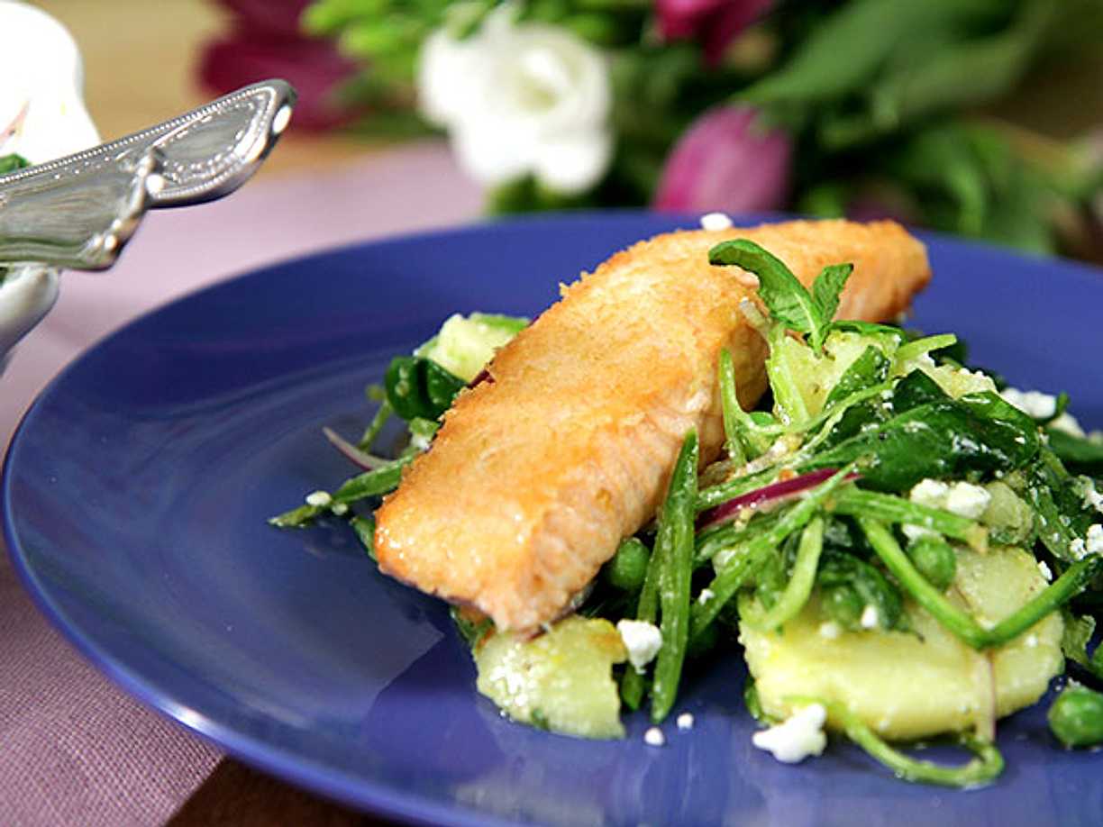 Lax med ärtig spenatsallad