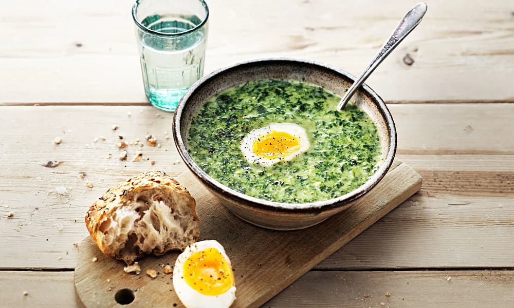 Spenatsoppa med ägg och bröd