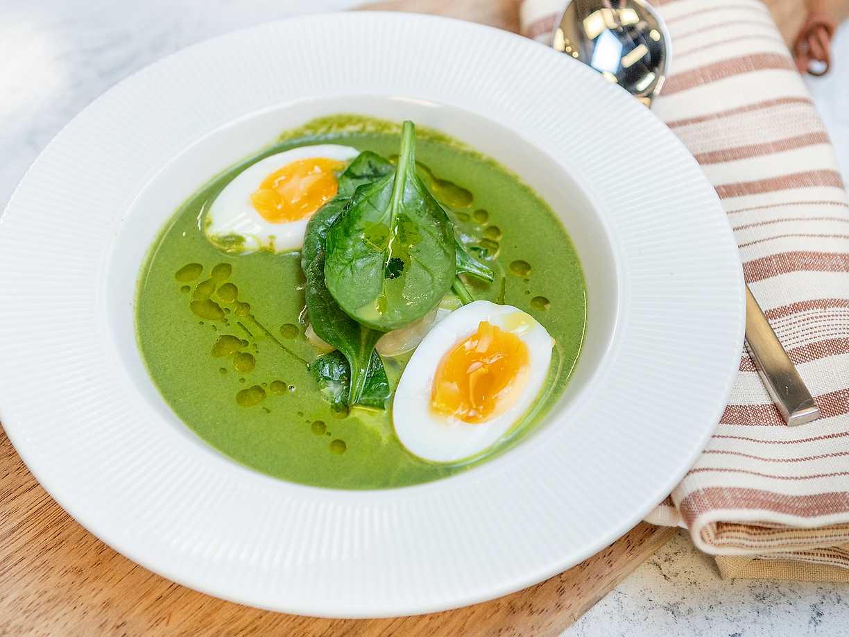 Spenatsoppa med perfekta ägghalvor