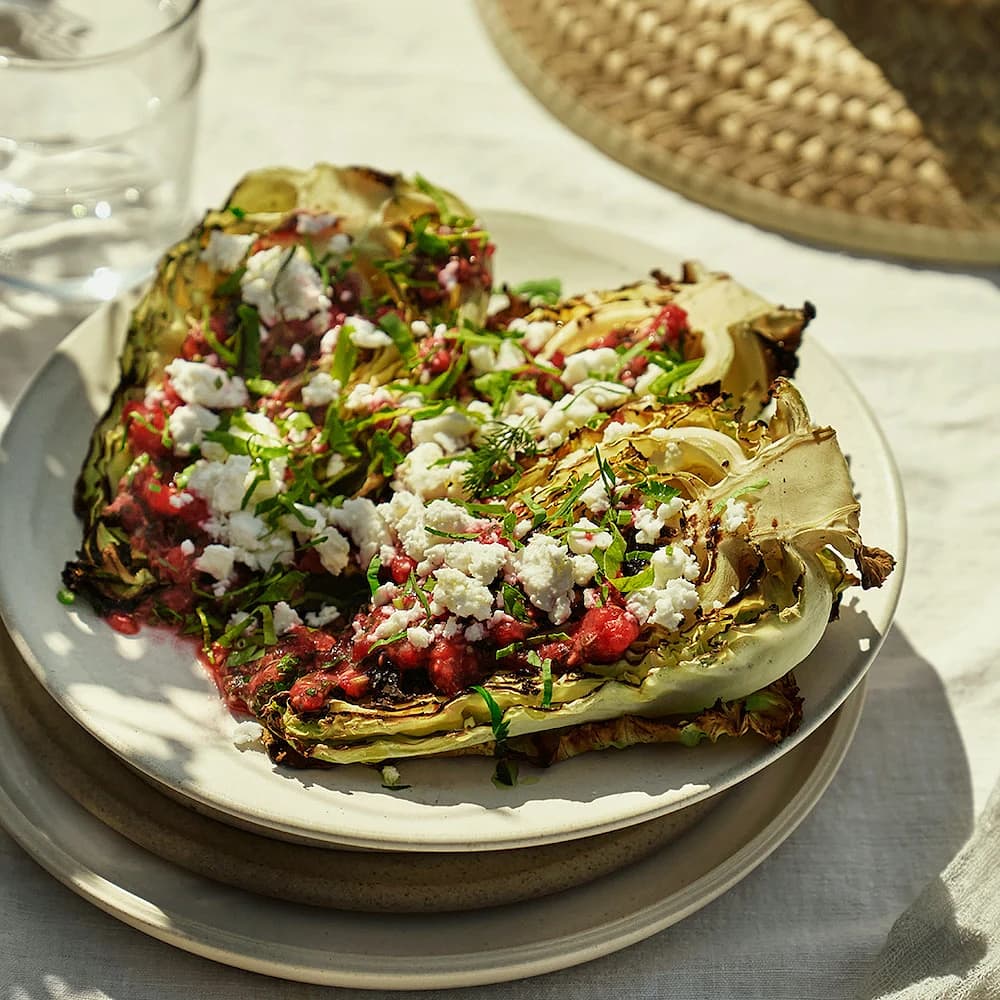 Helgrillad spetskål med brynt smör och crunchiga nötter
