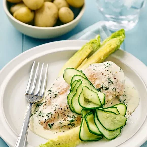 Stekt kyckling med dillsås och pressgurka