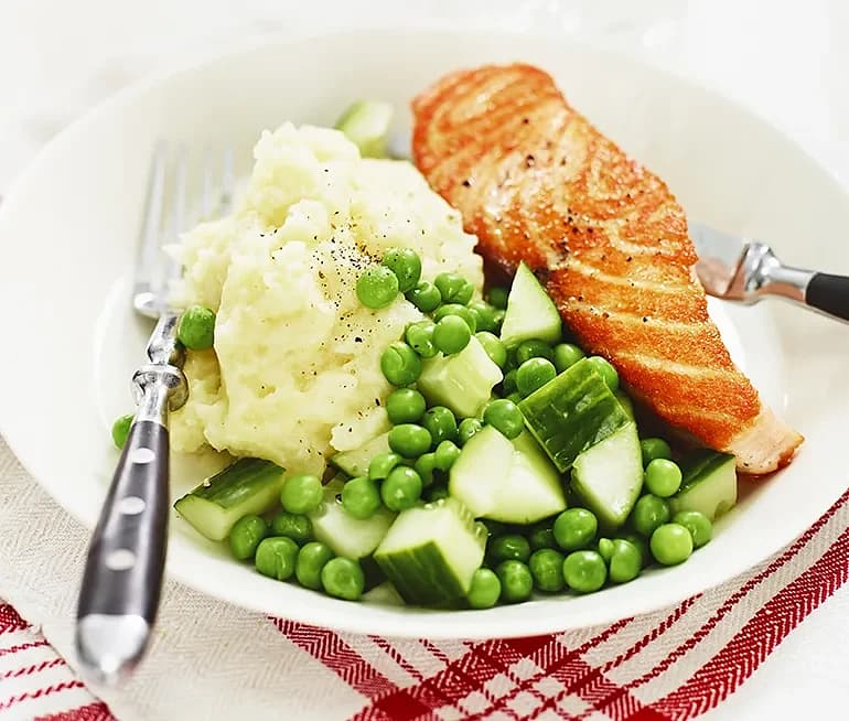Stekt lax med ärtmos