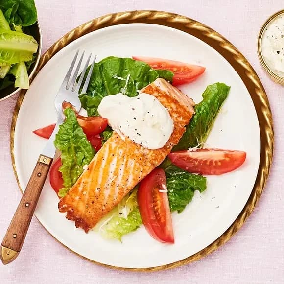 Stekt lax med dragonkräm