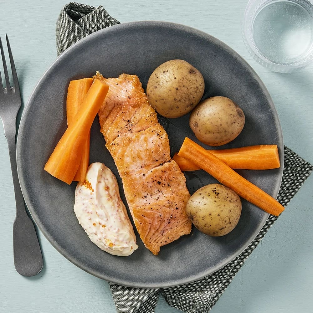 Stekt lax med dillstuvade morötter