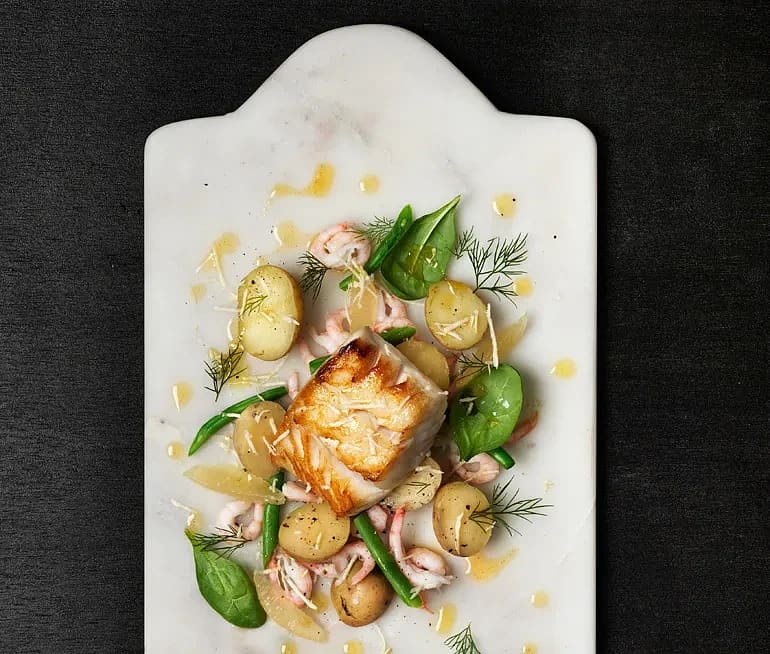 Stekt torsk med kräftröra och dill