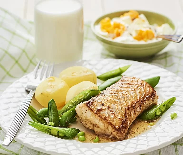 Stekt torsk med äggsås och broccoli