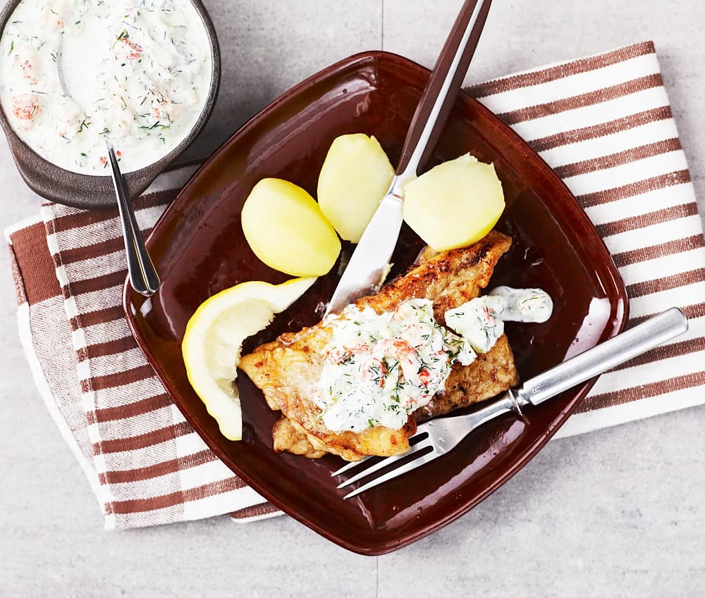 Stekt torsk med kräfttzatziki