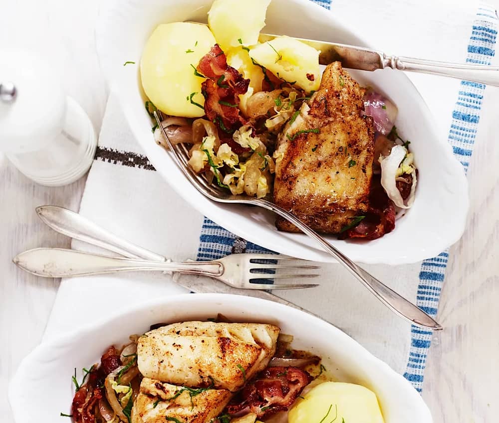 Stekt torsk med bacon