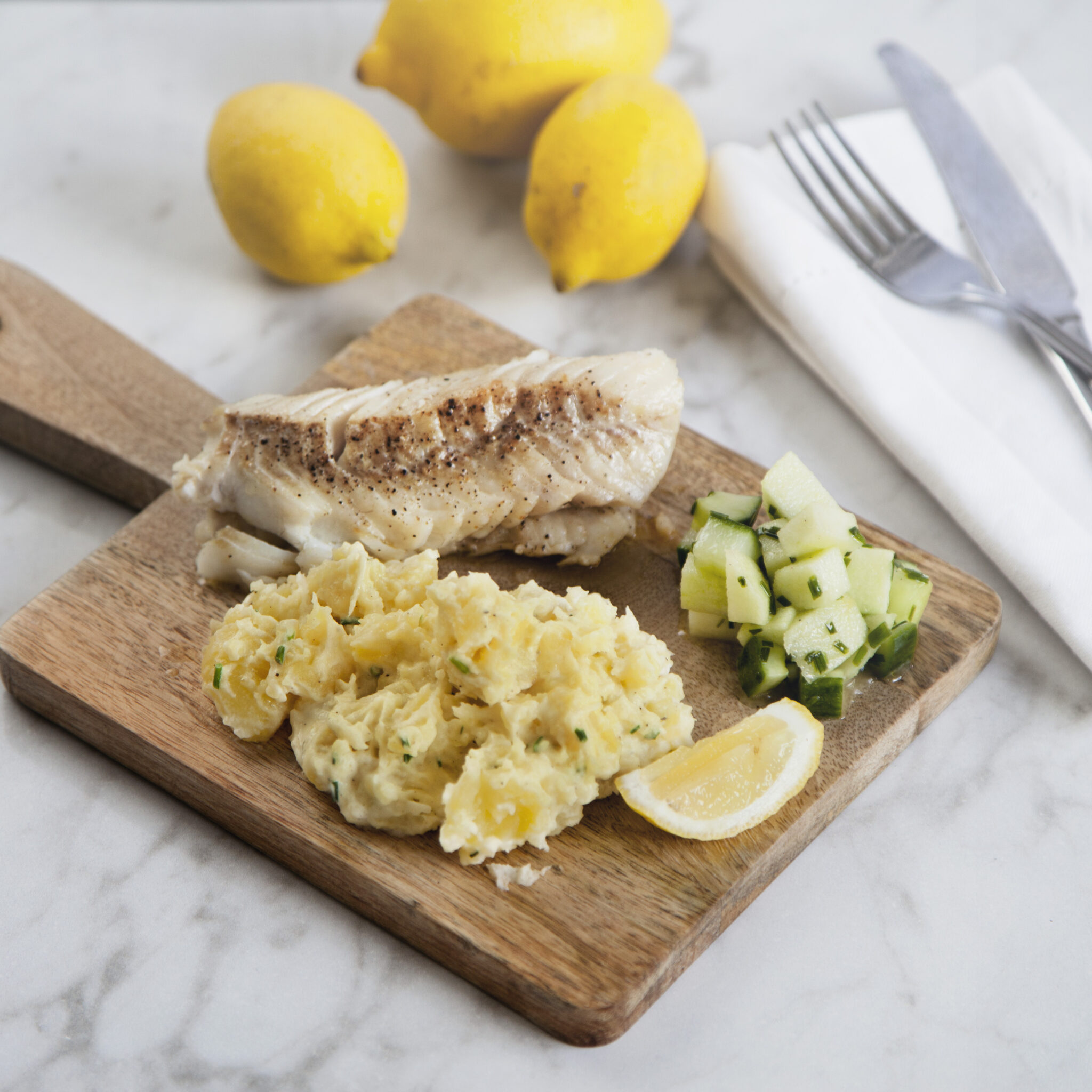 Stekt torsk med pressad potatis