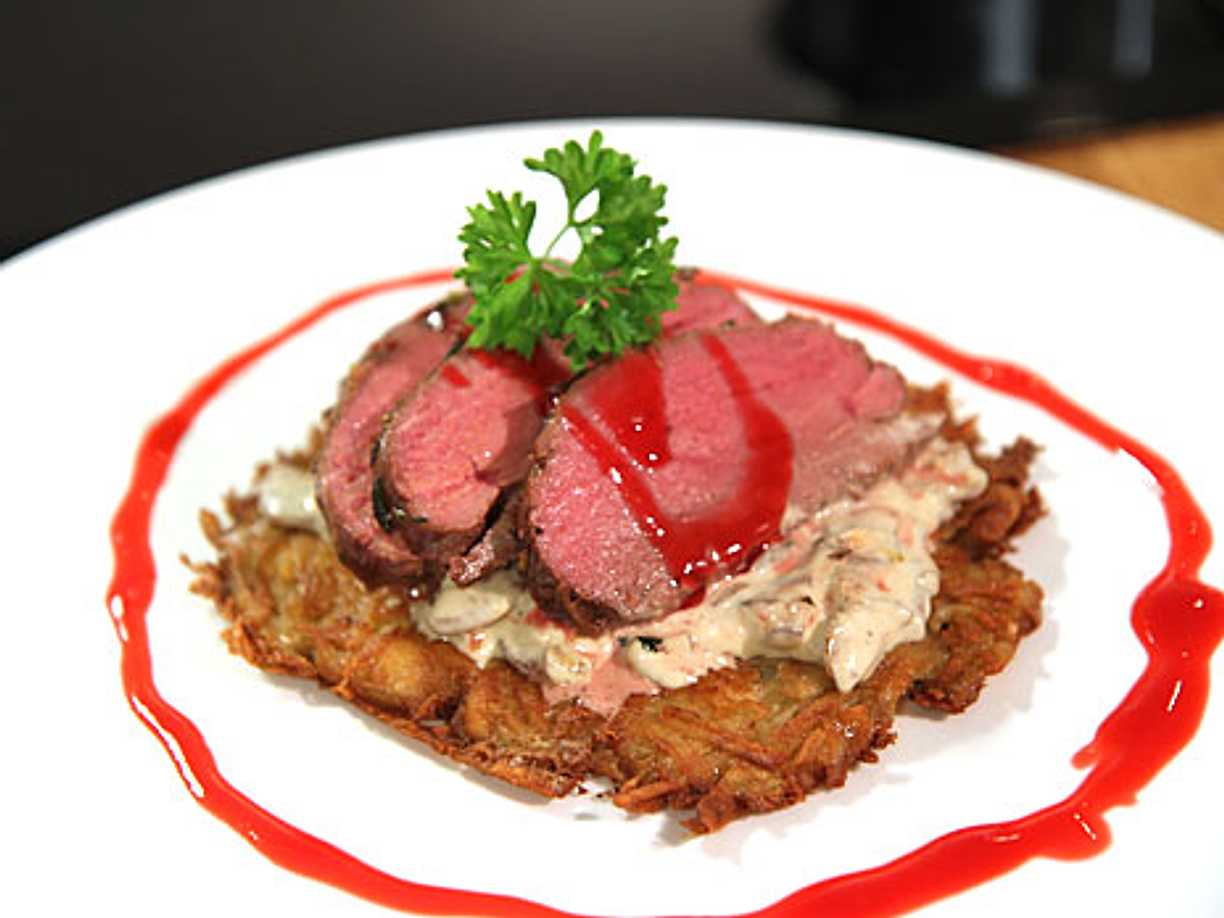 Örtstekt älgytterfilé med potatisrösti