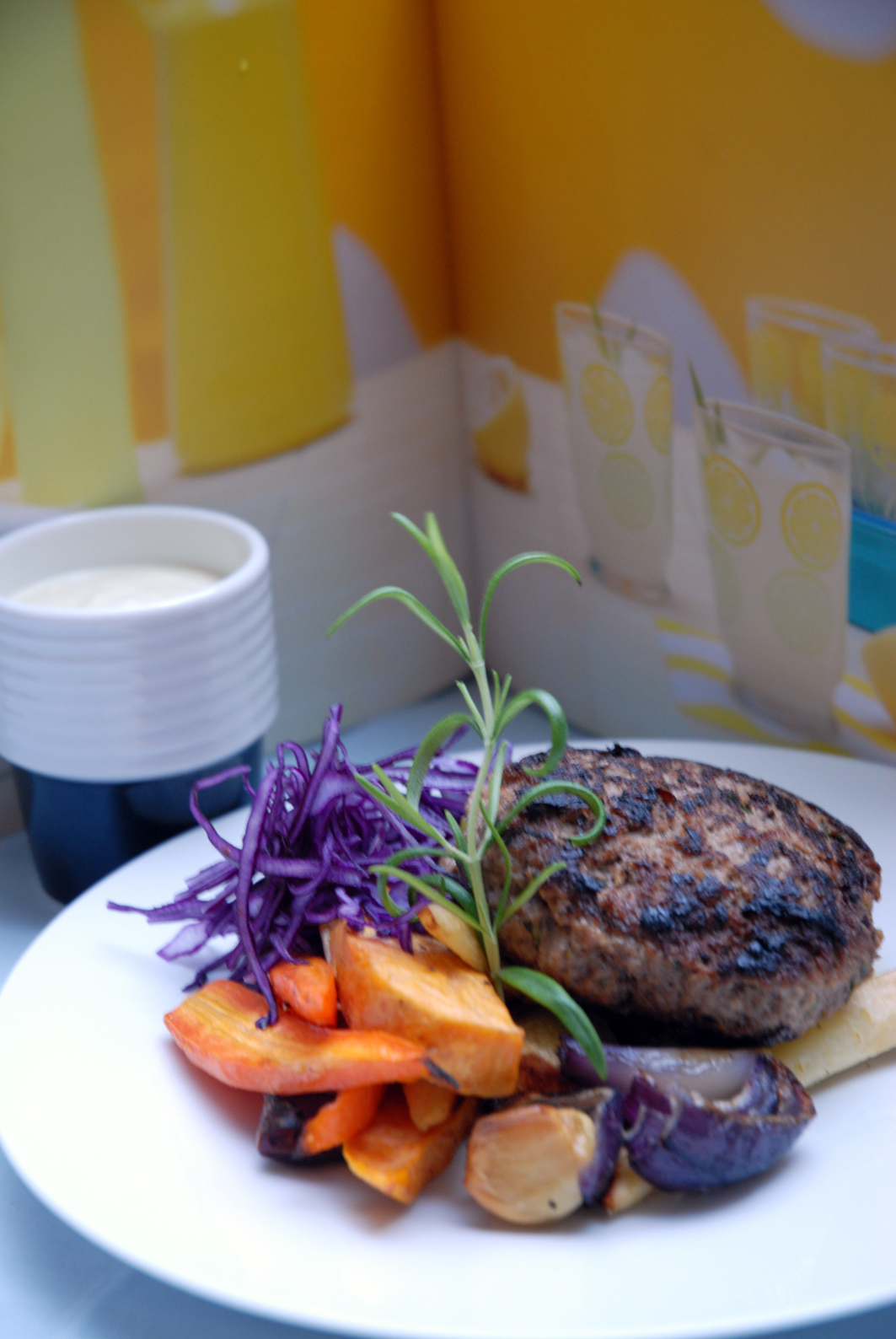Kalvfärsbiffar med rotfrukssymfoni & dijonsås