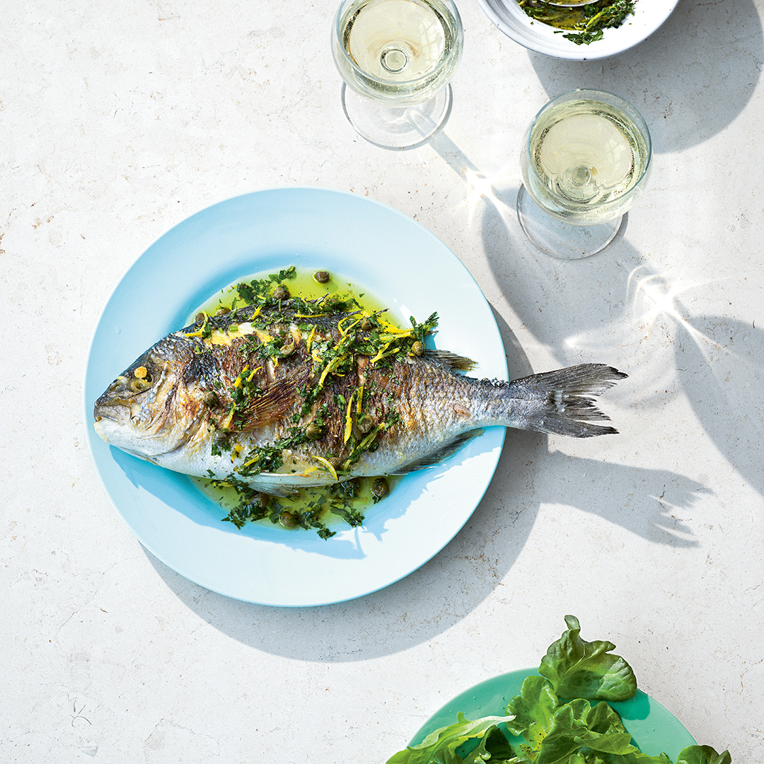Helstekt fläskytterfilé med smak av citrontimjan och sardeller