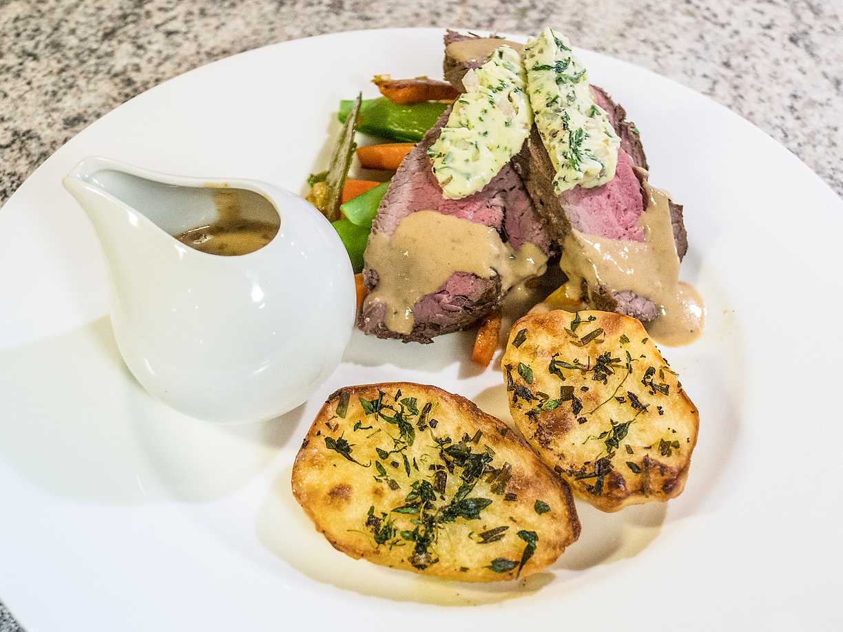 Helstekt ytterfilé med selleri- och champinjonsallad och hasselnötsmajonnäs