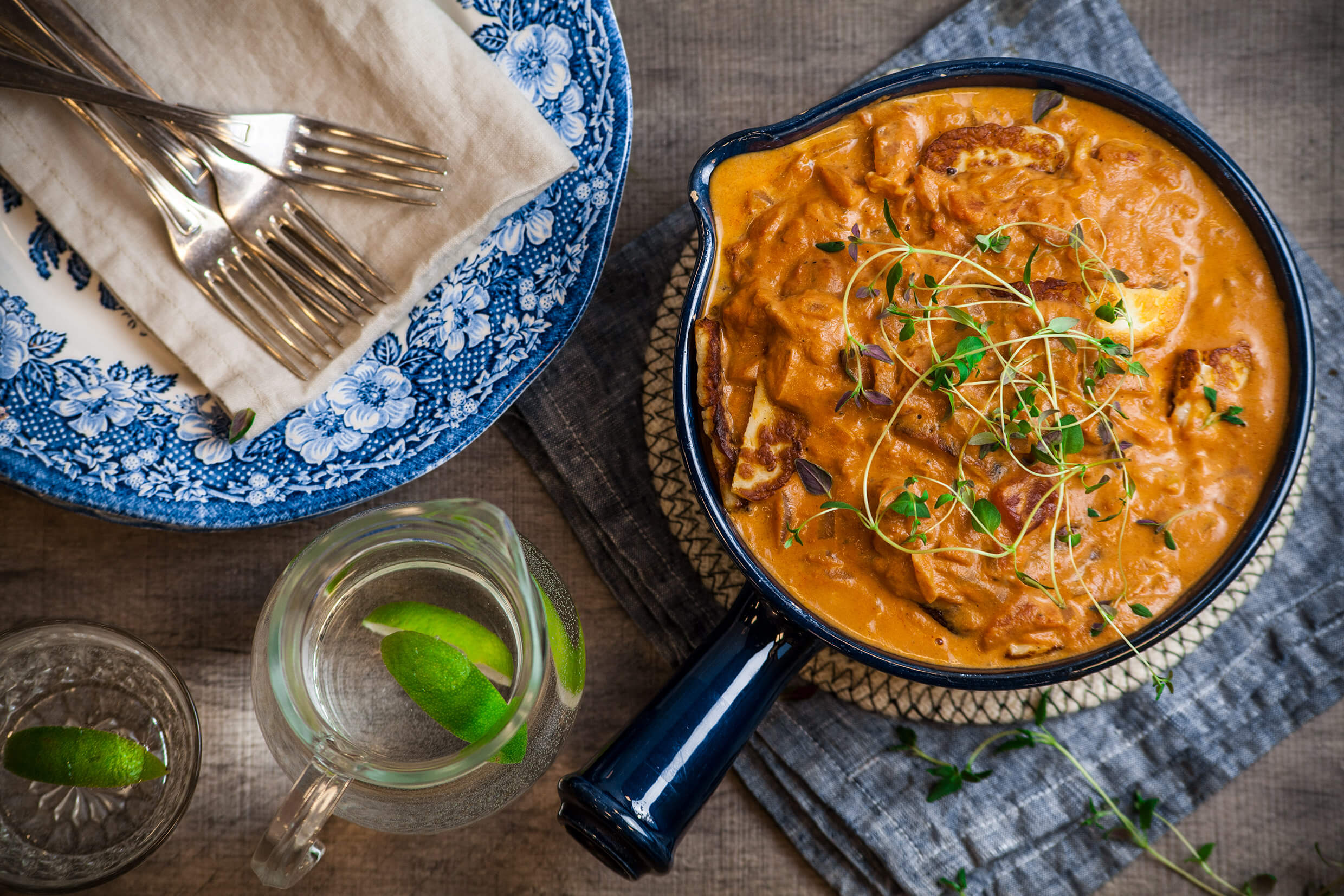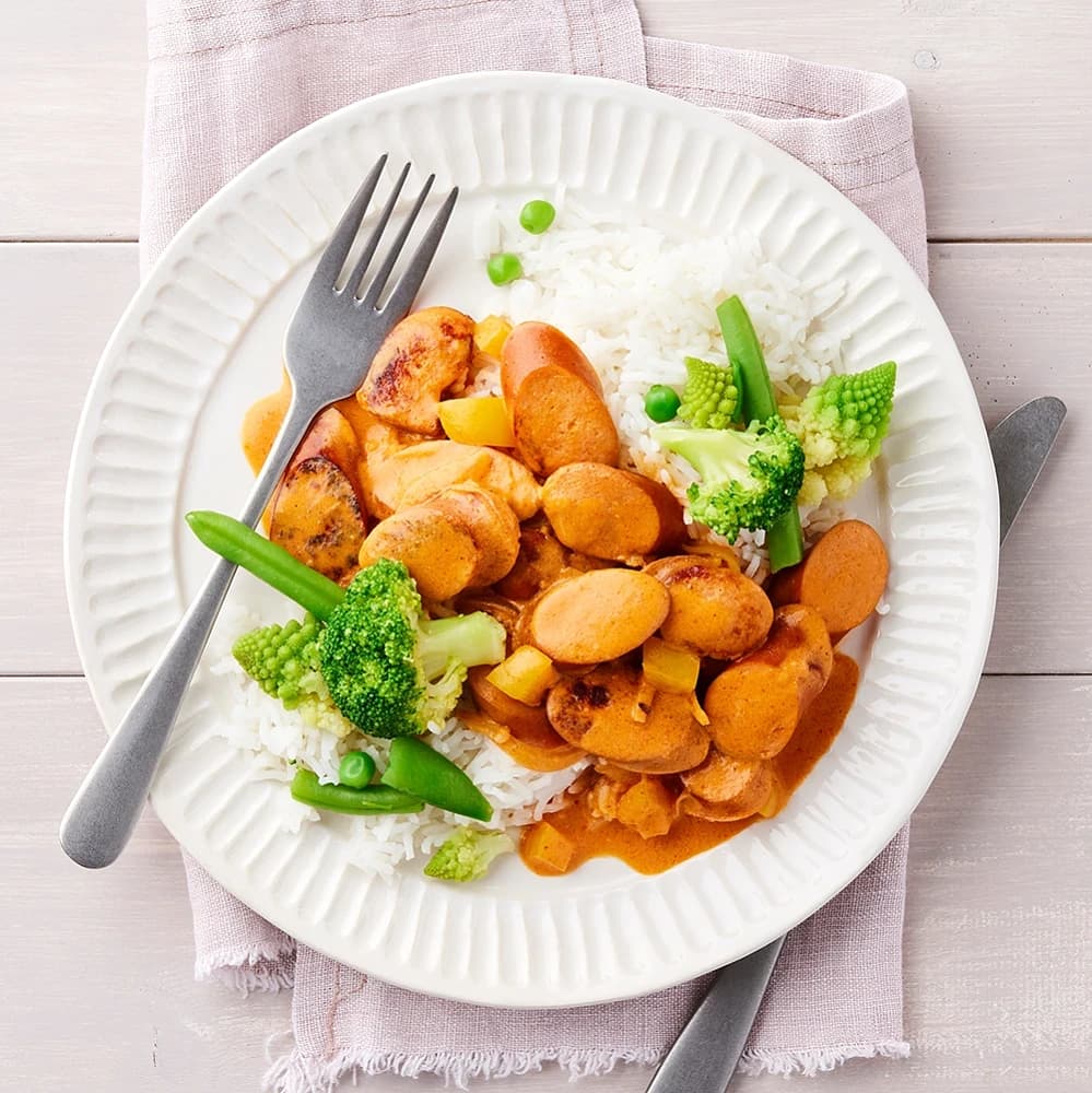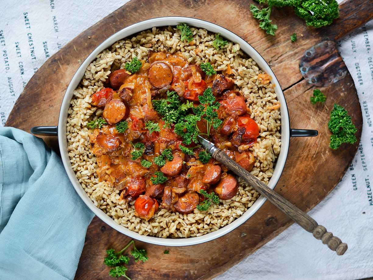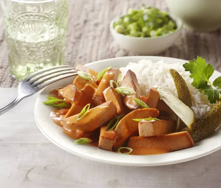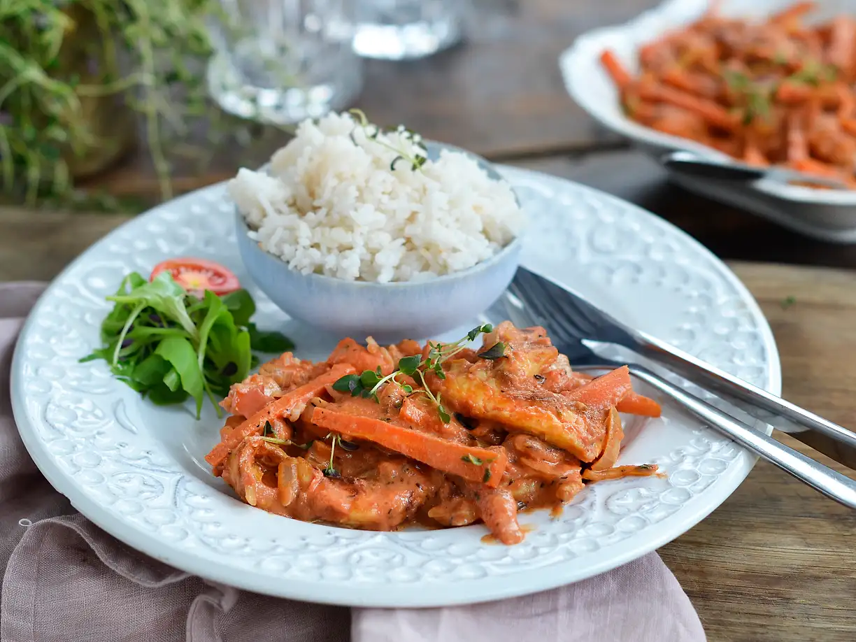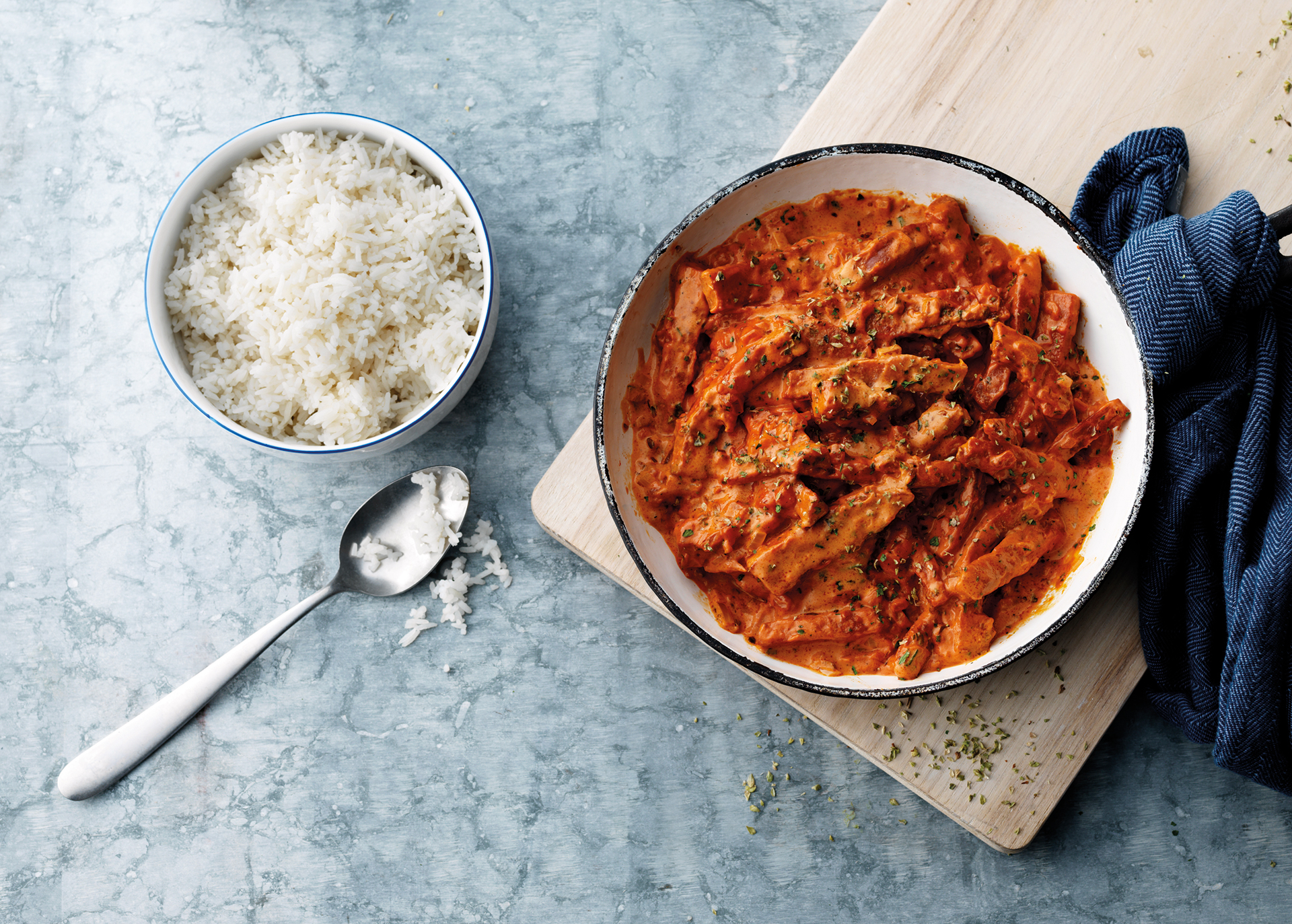 Korv Stroganoff med rökt fläsk, paprika och rosmarin