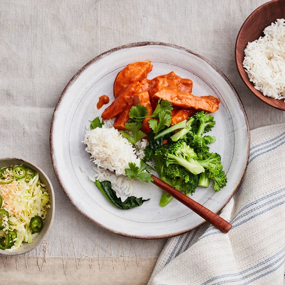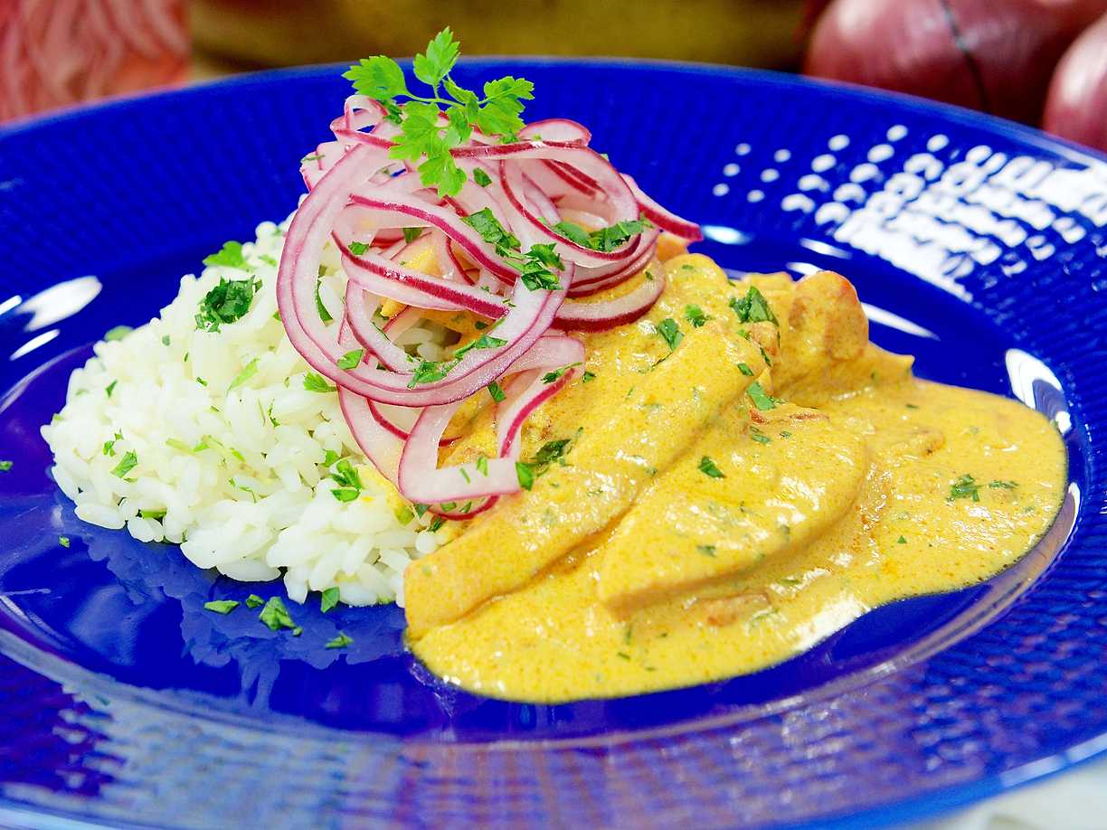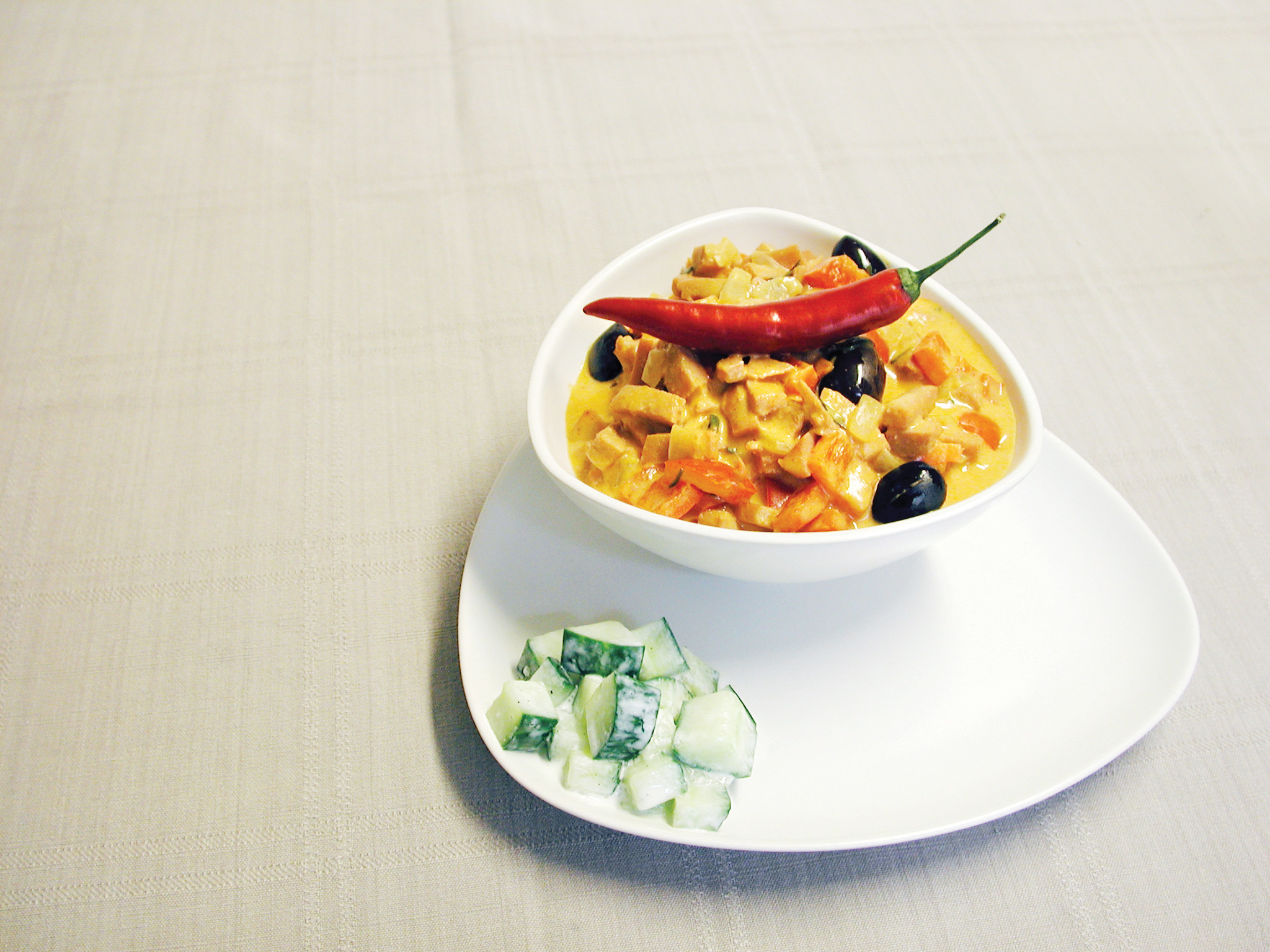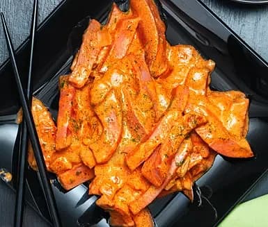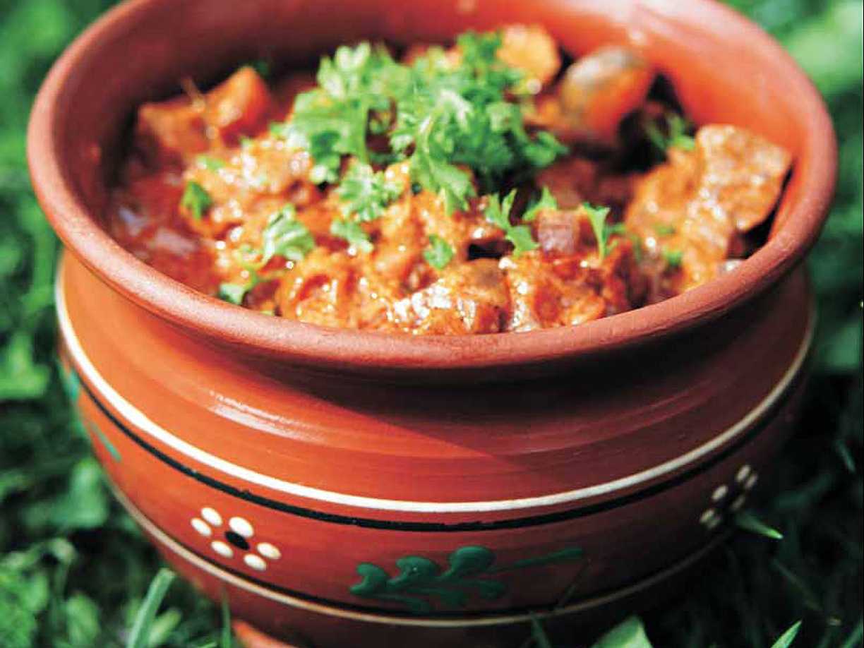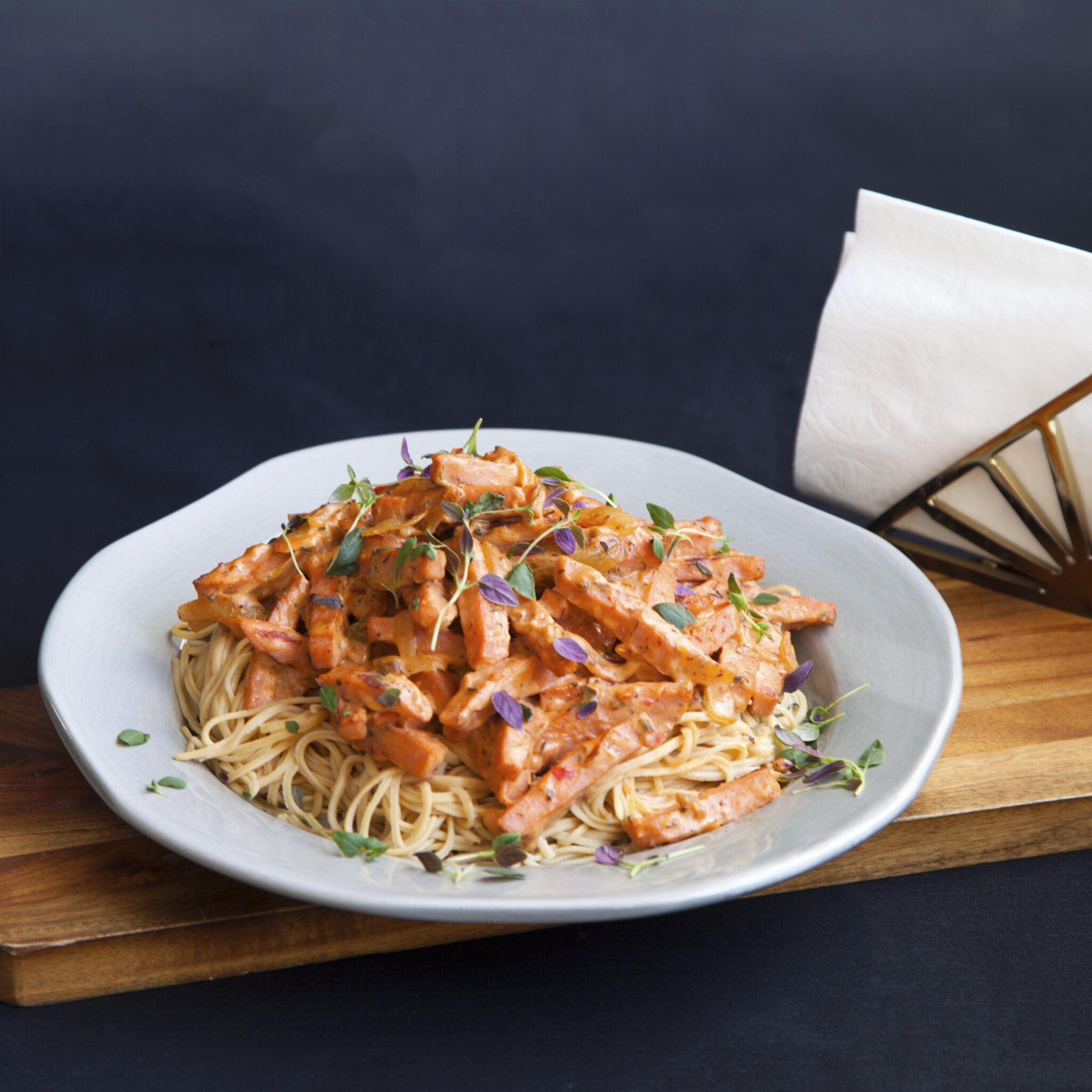 Korv Stroganoff med rökt fläsk, paprika och rosmarin