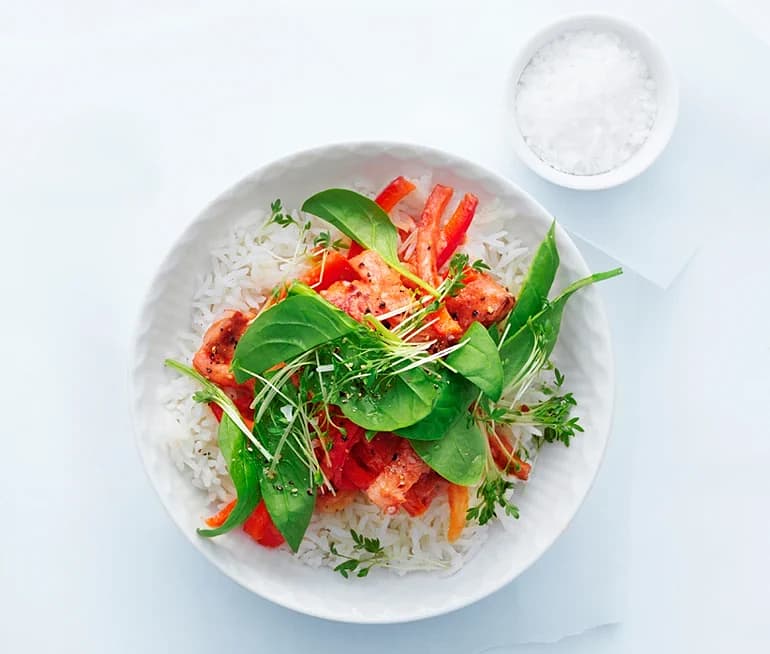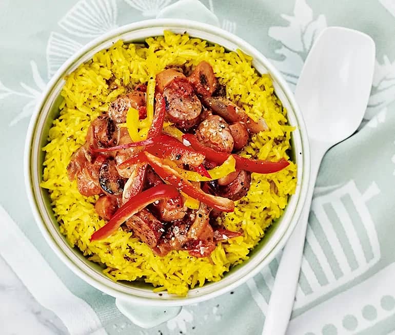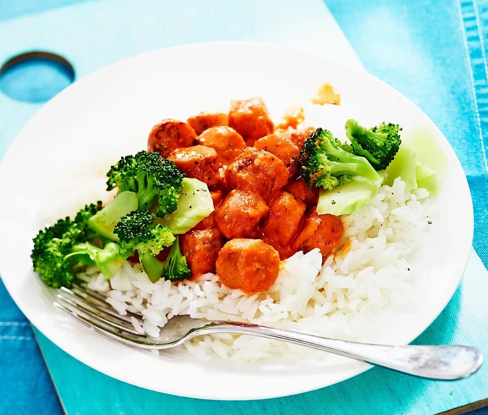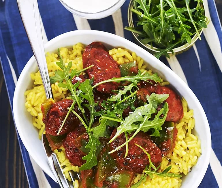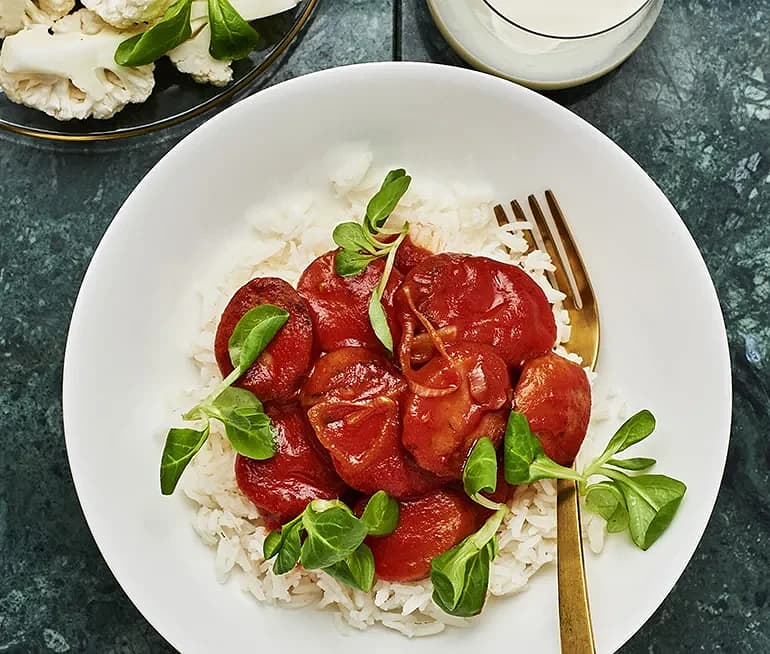 Tinas korv Stroganoff med marockanskt ris