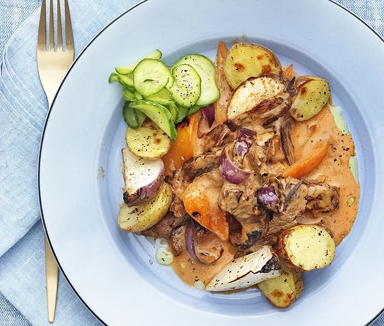 Biff Stroganoff med rostad majrova