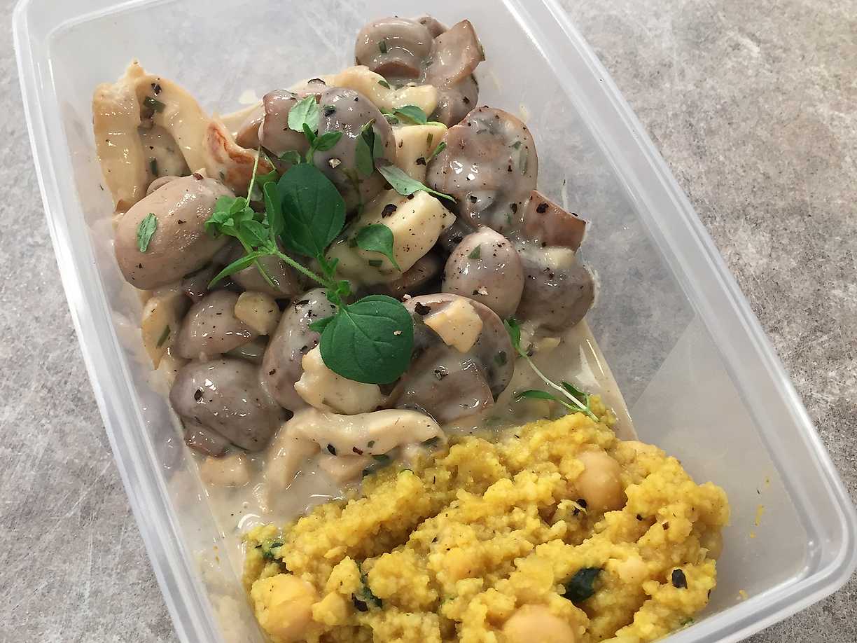Halloumi stroganoff med couscous