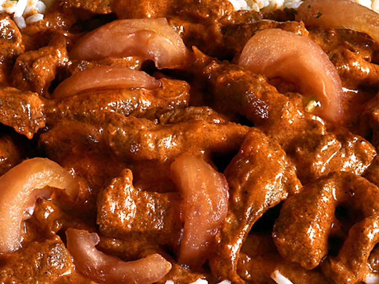 Nötkorv à la Stroganoff med curryris