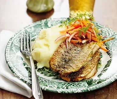 Dillstekt strömming med potatismos och morotssallad