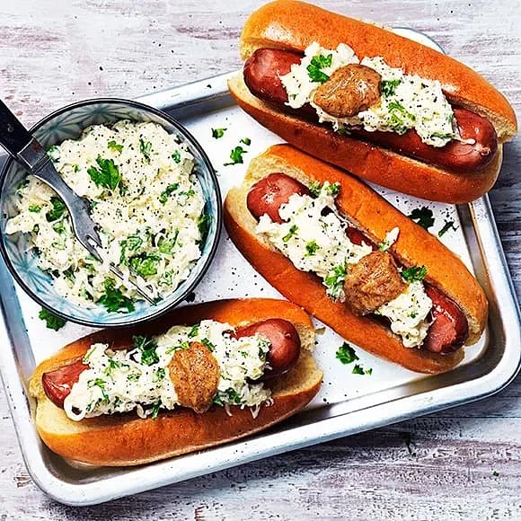 Proteinrik korv med surkål och senap