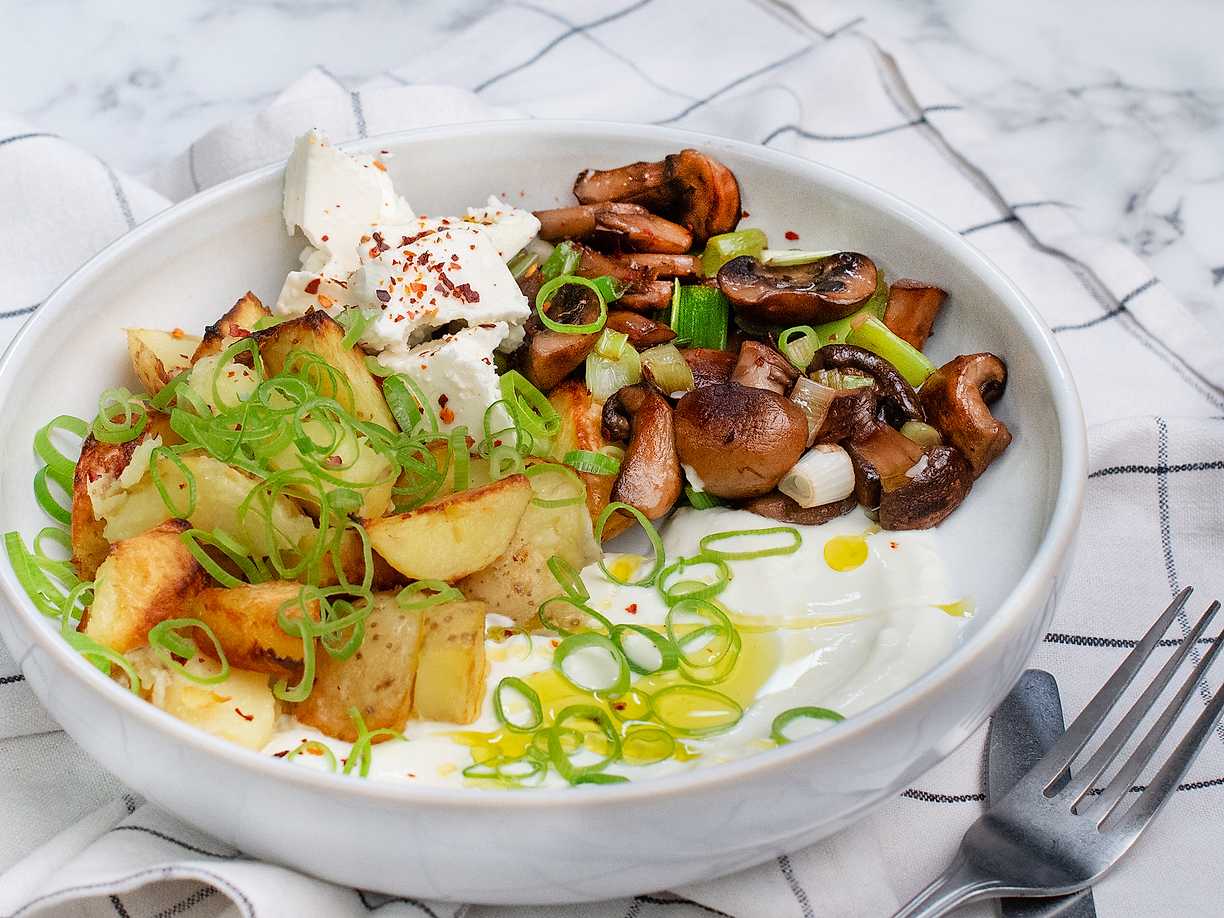 Potatistallrik med svamp och feta