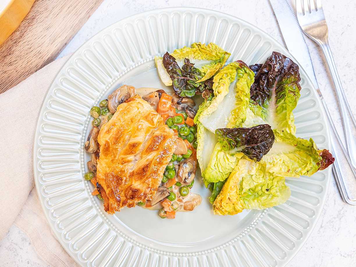 Smördegsinbakad fläskfilé med svamp och rödvinssås
