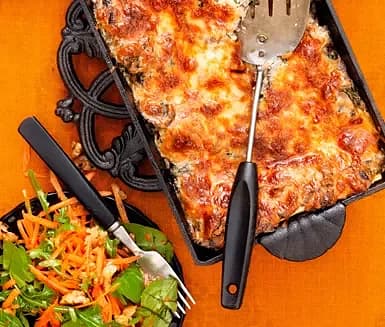 Mustig svamplasagne med valnötssallad