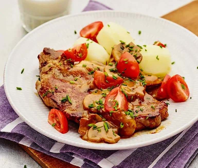 Fläskfilé med svampsås och rostad potatis