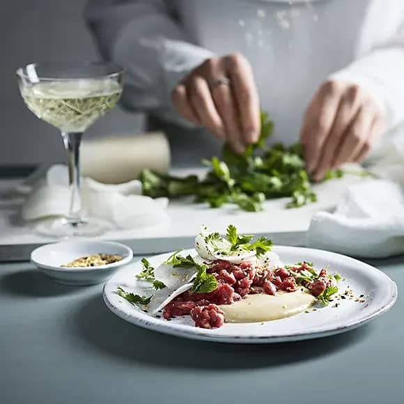 Mathias Dahlgrens nyårsförrätt med tartar på oxfilé, ostron och vattenkrasse