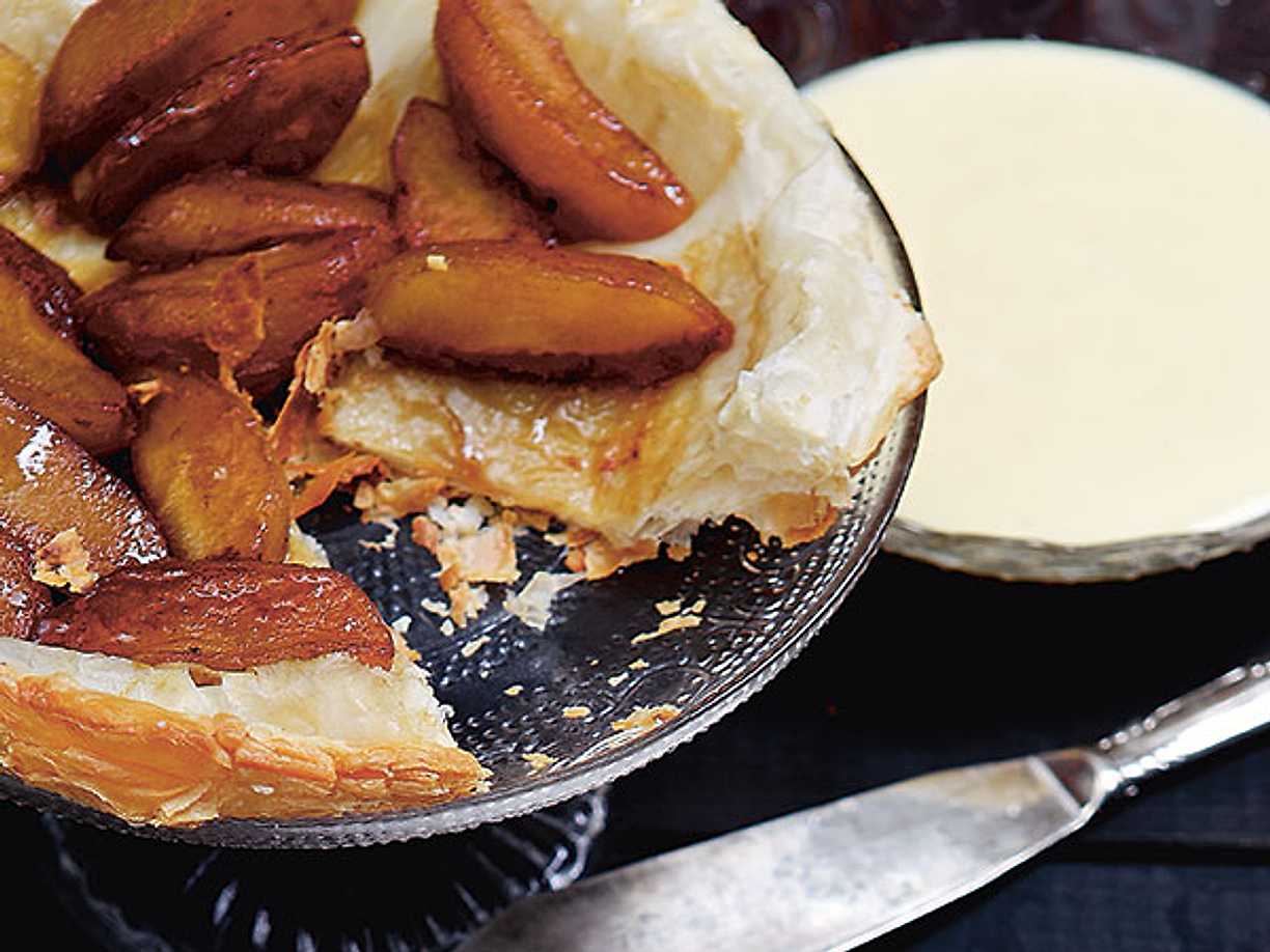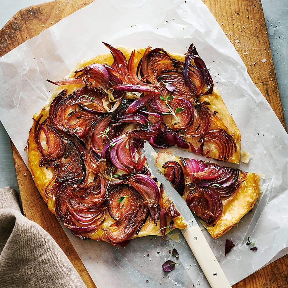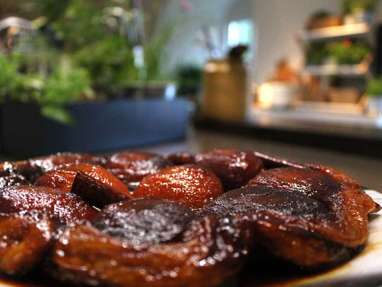Tarte Tatin på gul lök med gräslöks-fraîche