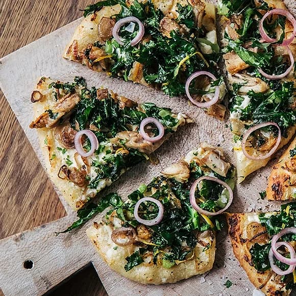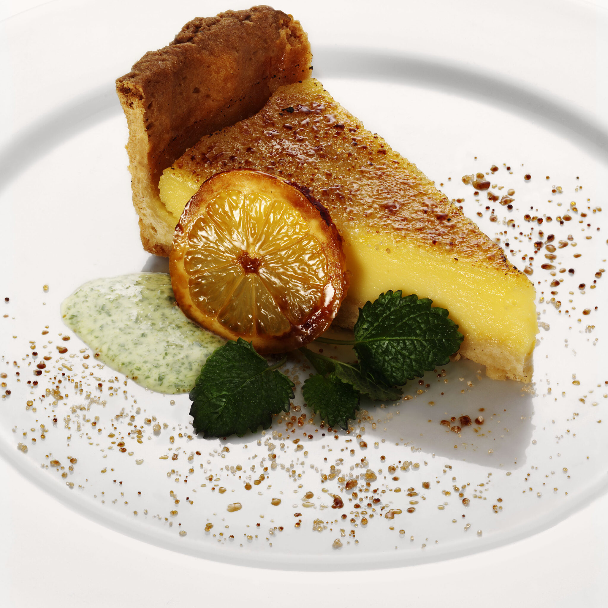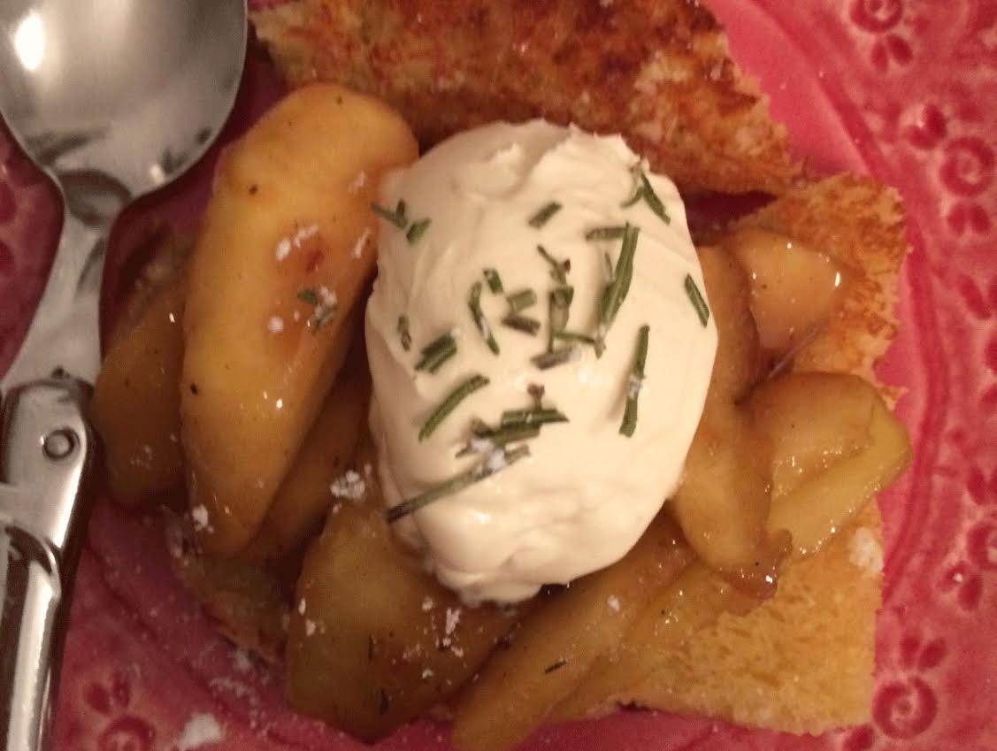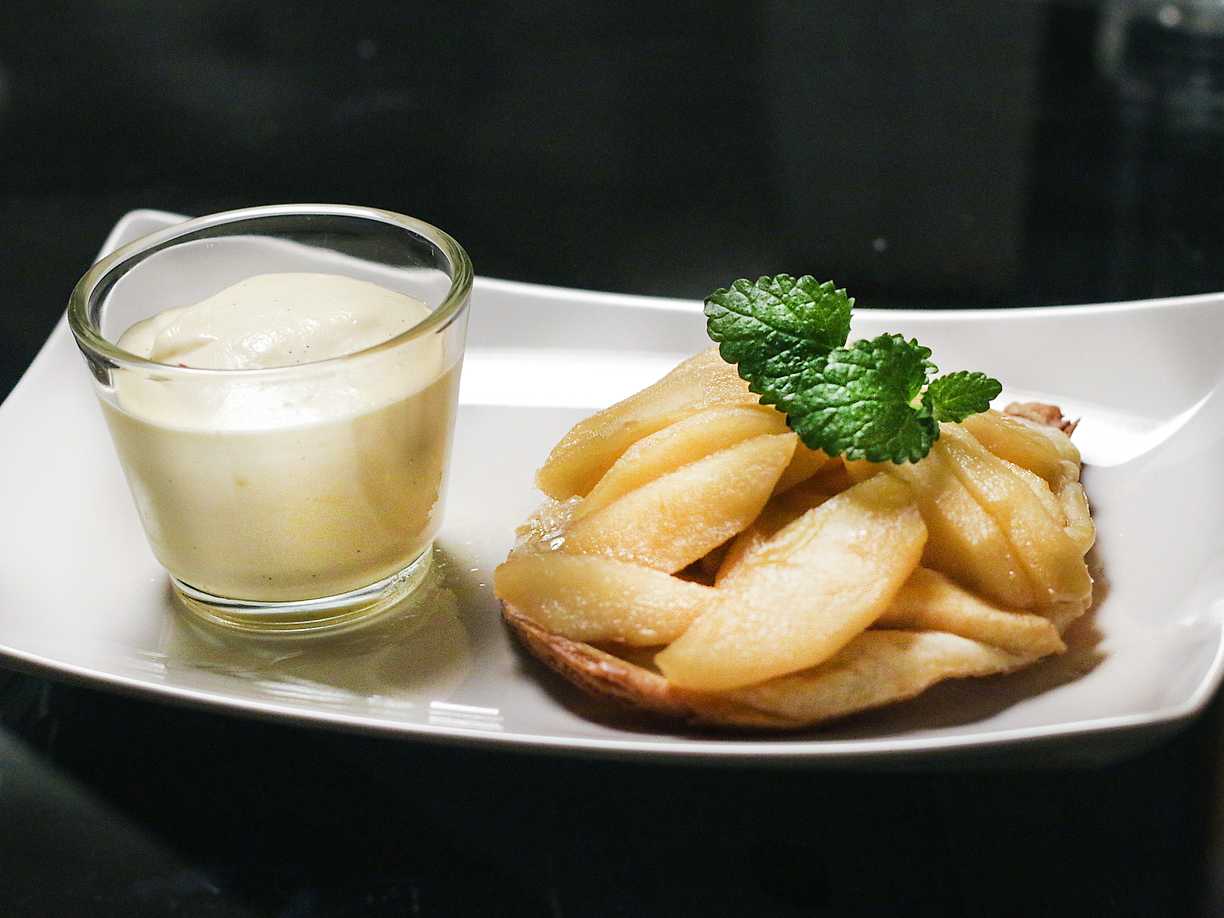 Tarte Tatin på gul lök med gräslöks-fraîche