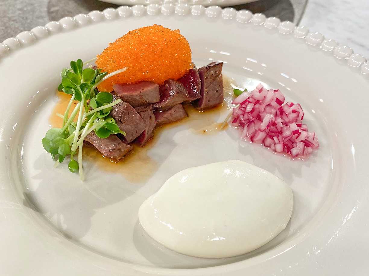 Tartar på hjortfilé med rostad lökkräm och löjrom