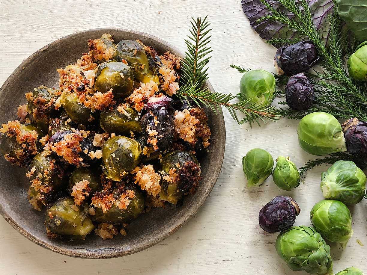 Brysselkål med granatäpple och salvia