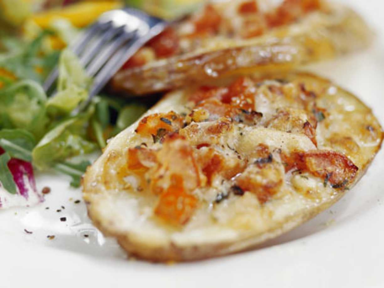 Pluras kycklingschnitzel med klyftpotatis och ruccola