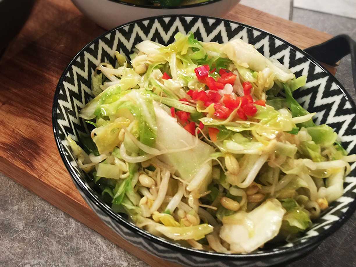 Spetskålsallad med grape- och sesammarinad