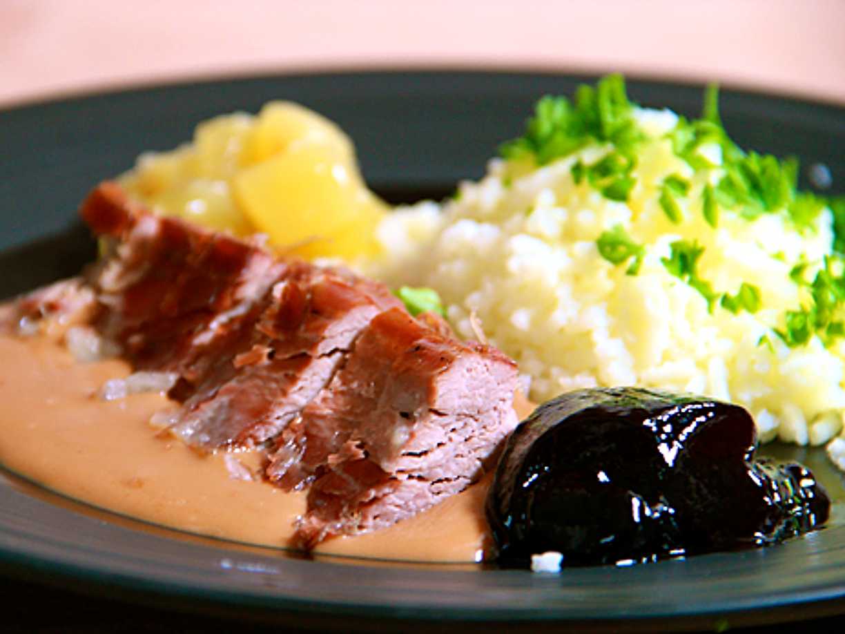 Helstekt lammytterfilé med tillbehör